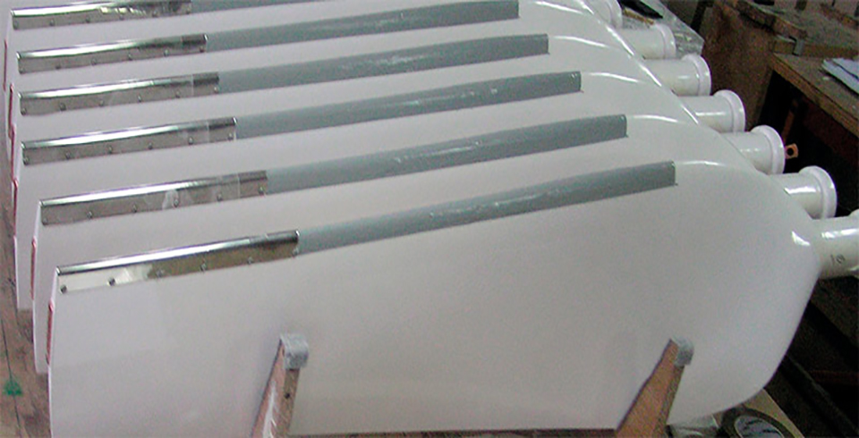 - В зоне повышенных линейных скоростей передняя кромка лопасти имеет защитную накладку из нержавеющей стали, для предотвращения износа от столкновения с пылью и микро каплями воды впрыска.